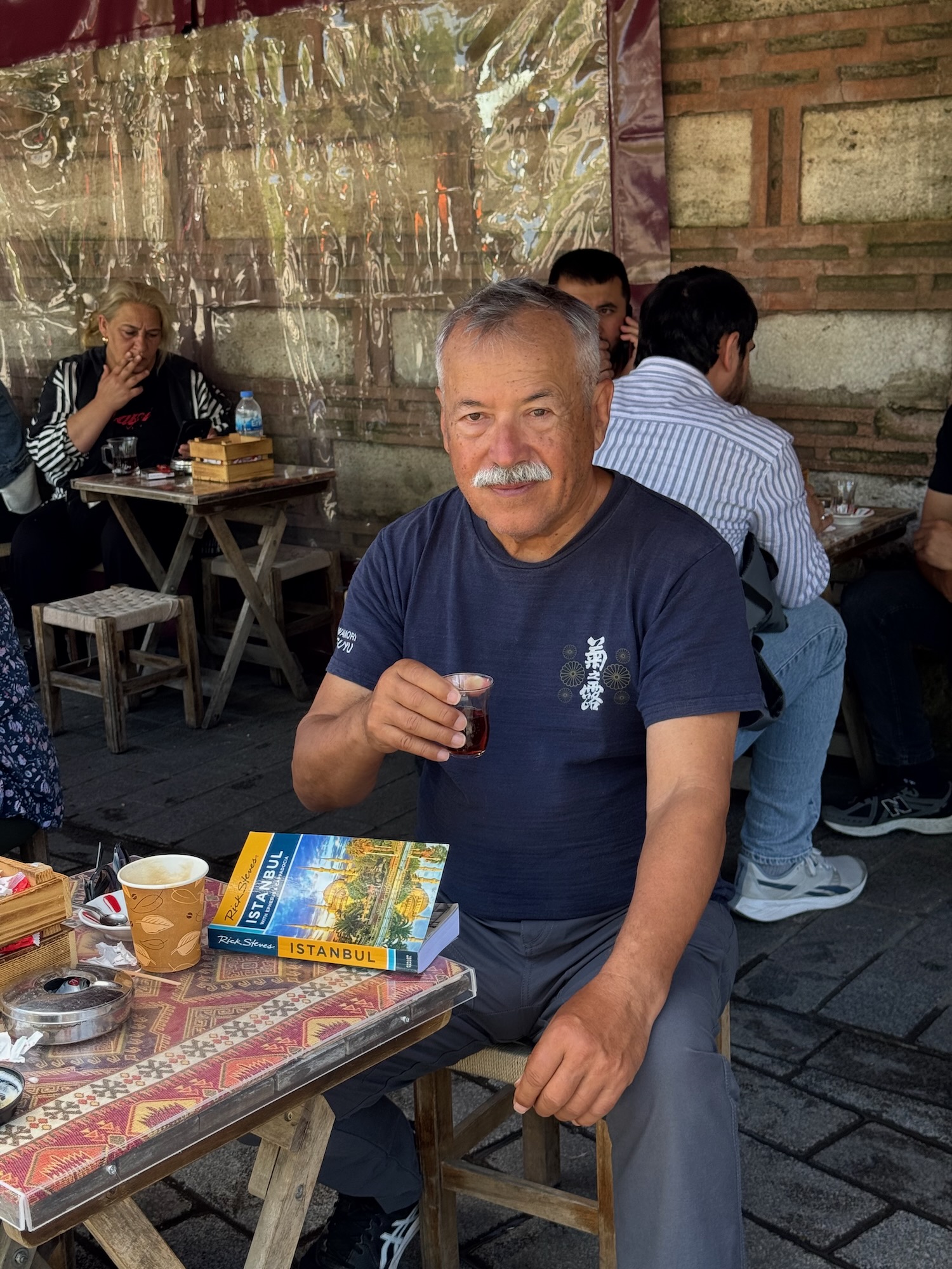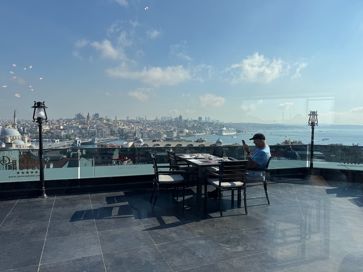 Demiray Hotel Terrace View Many steps between our hotel and old town Istanbul.Turkish Tea at an Istanbul Cafe.