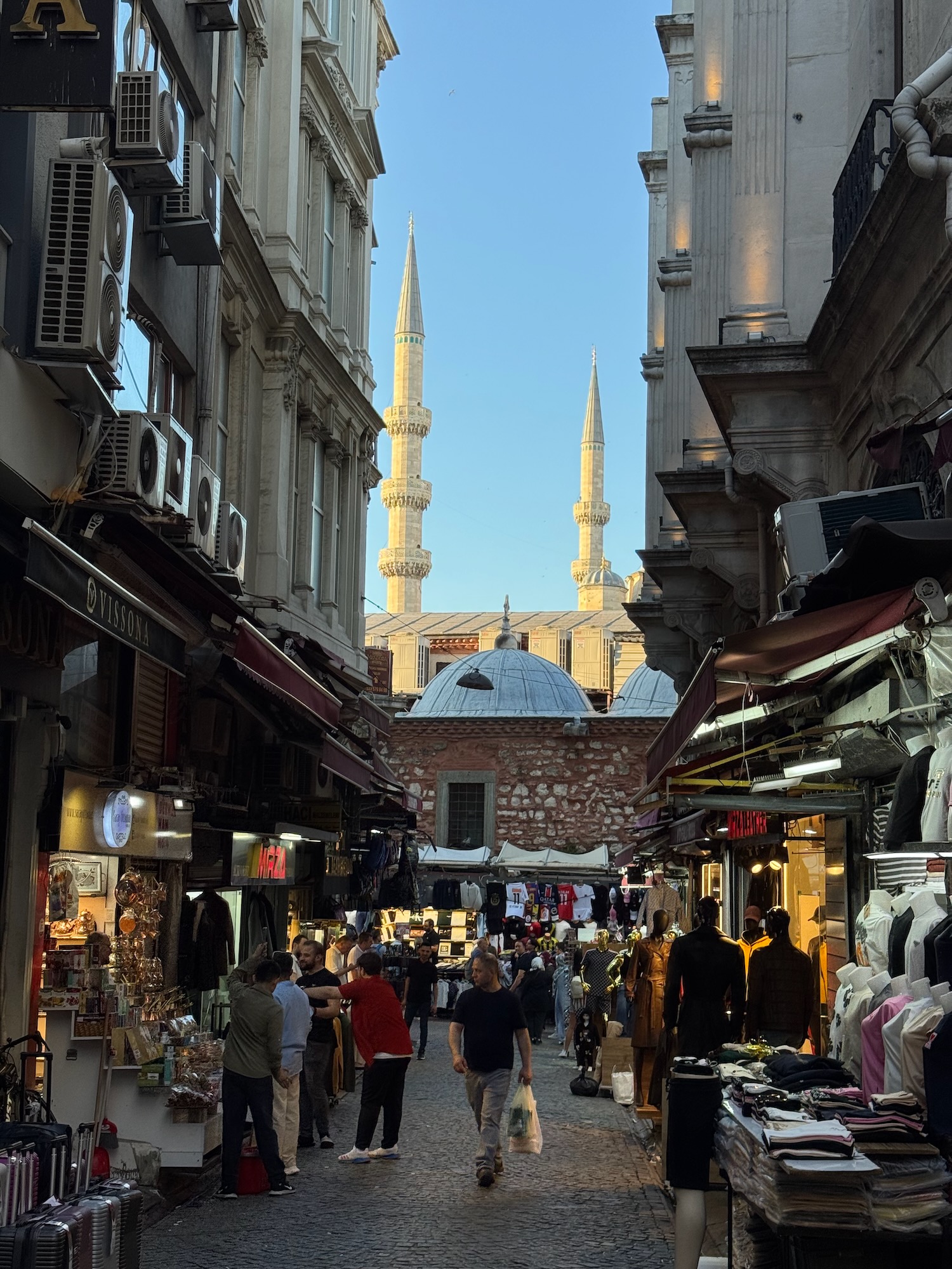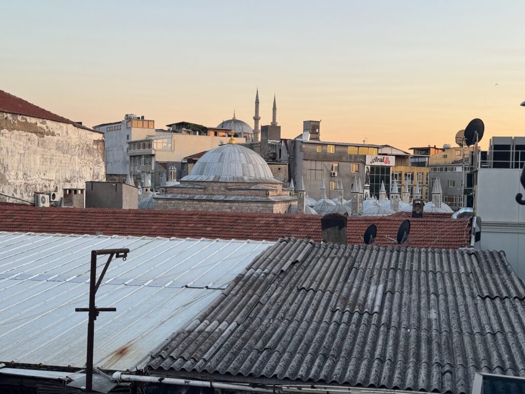 From Hagia Sophia we walk along late afternoon sunlit plazas with domes and minarets glowing in the magical light.