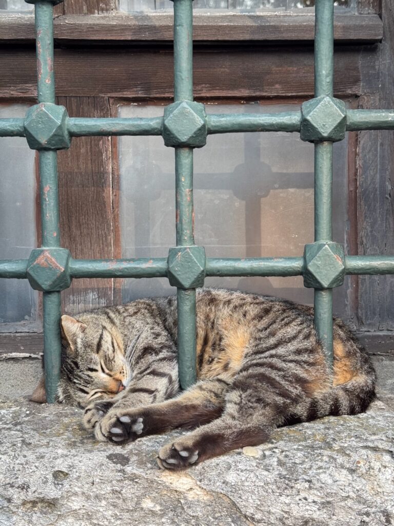 Hagia Sophia MosqueArt in front of the Deesis Mosiac – Mary, Jesus and John the Baptist. Cat in the grillwork of a Hagia Sophia window.