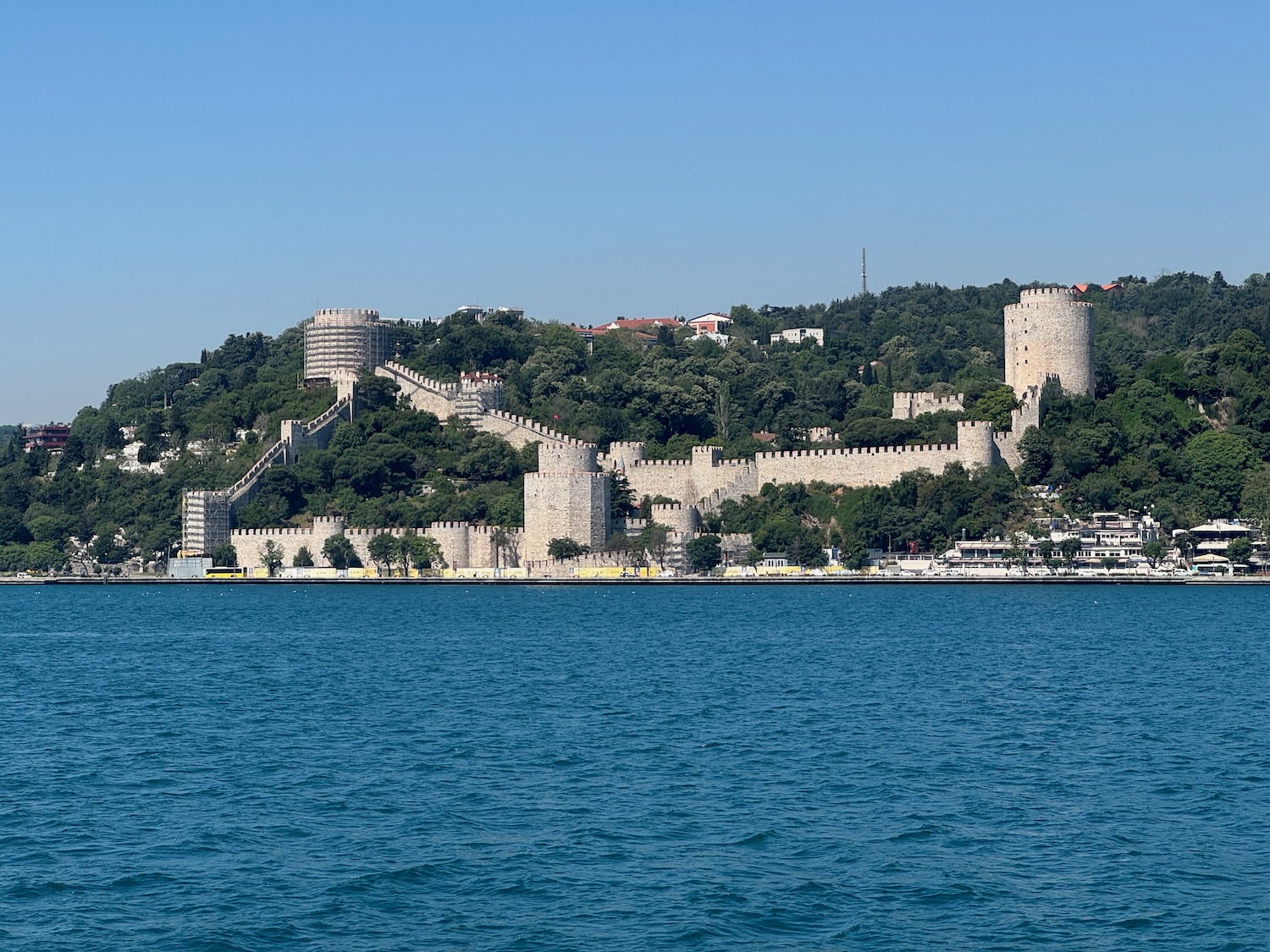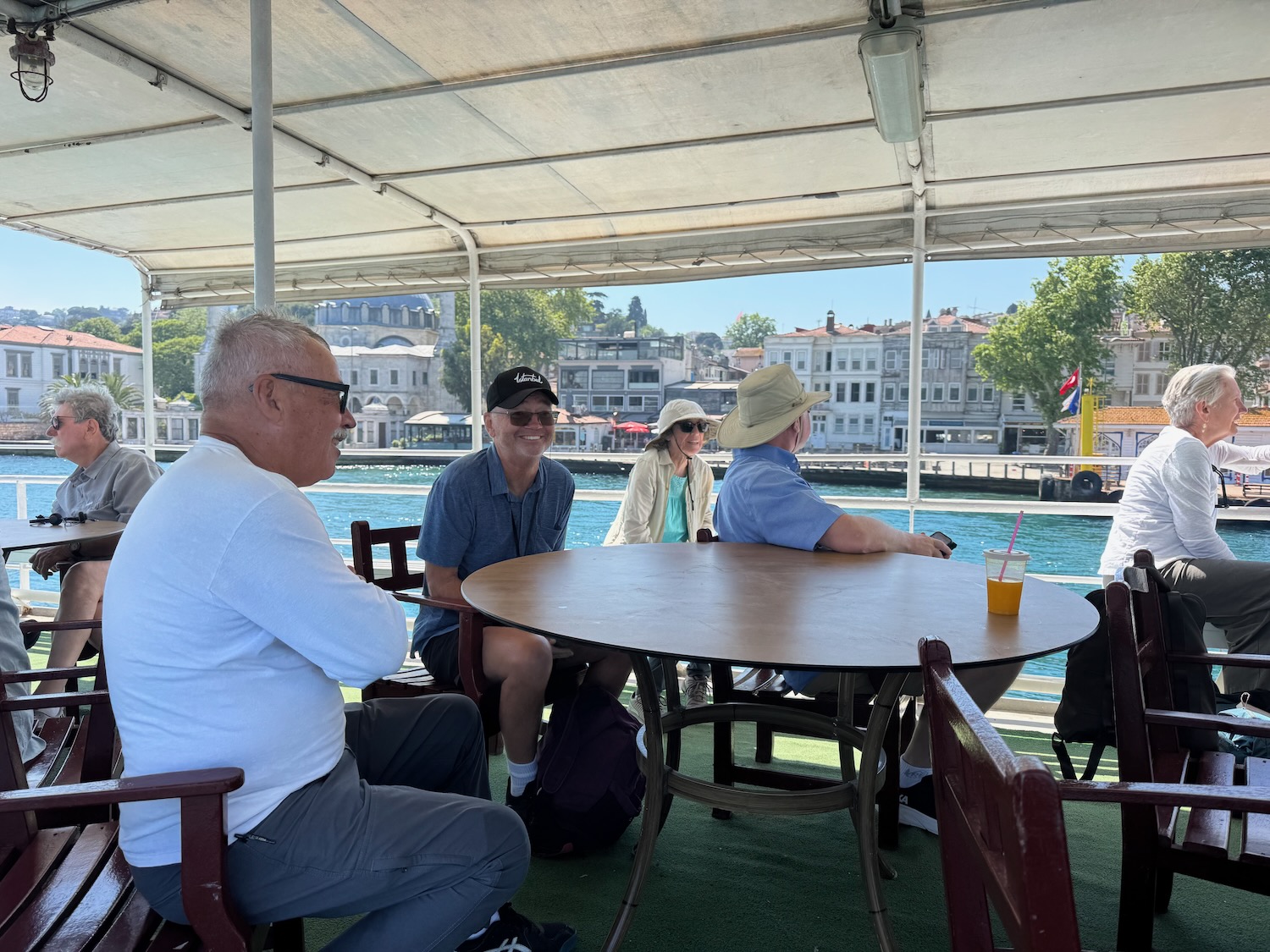 The day is crystal clear, warm and slightly breezy. I have been surprised that we have experienced little or no air pollution in Istanbul but the city straddles the Bosphorus Straight between Europe and Asia with the Sea of Marmara is to the south and the Black Sea is to the north so there is plenty of cross ventilation. I stand up to take a photo and my newly purchased straw hat from Los Gatos is lifted from my head and I sadly watch it float away on the water below. It was a great hat and I hope that someone finds it and enjoys it as much as I have over the past few days. It’s a replaceable loss but what will I do without a hat for our upcoming tour? (Out of desperation, I will buy a very ugly bucket hat two days hence.) It’s a lovely cruise and we visit with our tour mates. There are four groups of four who came on the tour together so it’s natural that they group together. We have been given a photo list of the members of our tour with a notation where they are each from. (no last names.) I watch the waterfront glide by and I spend time trying to match names with people. I have never had great face recognition but by process of elimination I will eventually figured out everyone’s names just days before our tour comes to an end.
