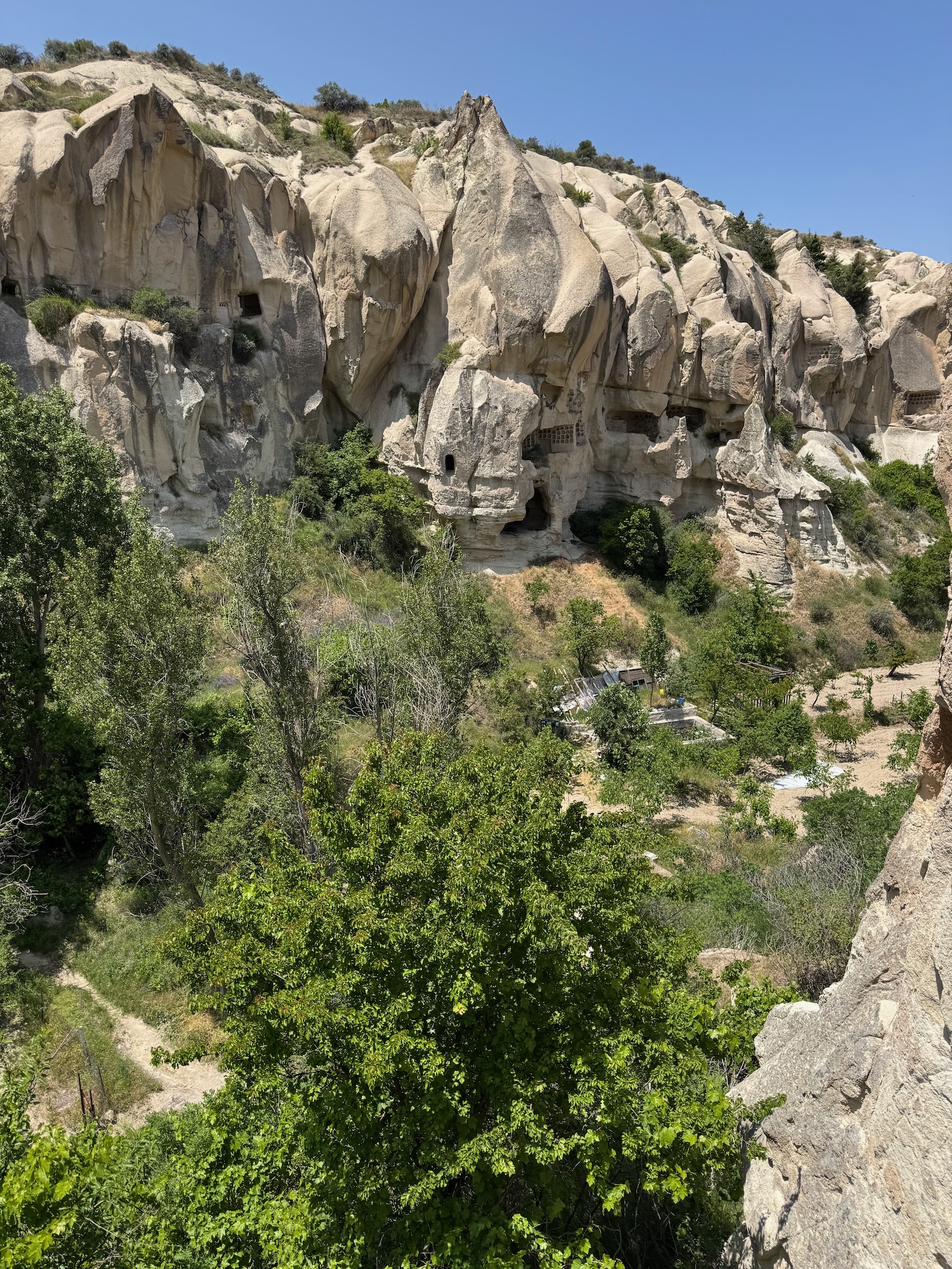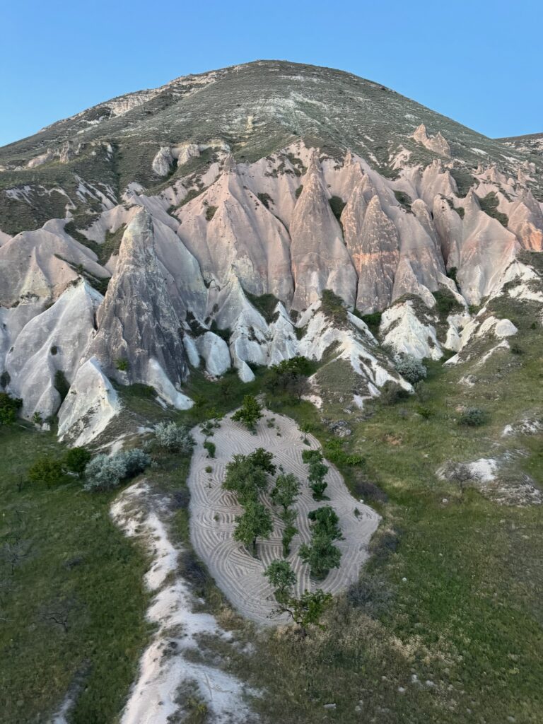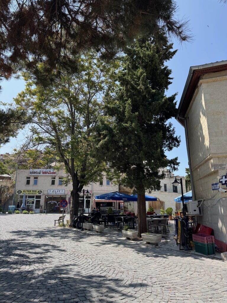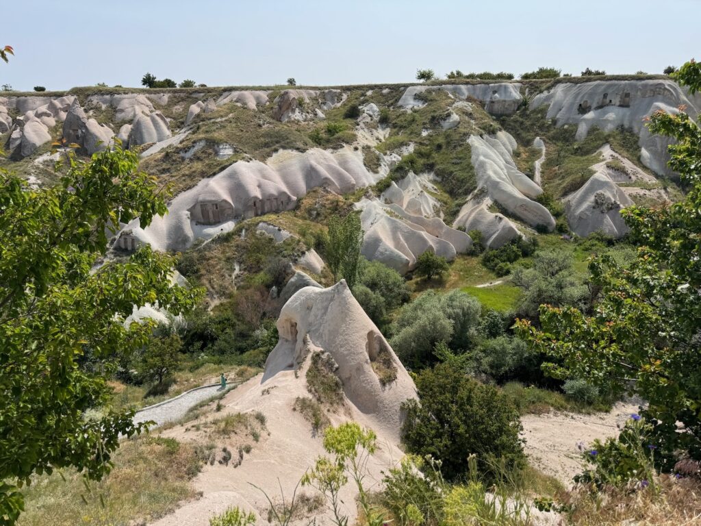 It’s late afternoon when we leave the highway and wind our way towards the village of Mustafapasa. The eroded volcanic landscape morphs into a Dr. Seuss moonscape of fairy chimneys and cliffs honeycombed with rooms. Is this Mesa Verde meets Bryce Canyon or a movie set from the Tolkien trilogy? The afternoon light casts long shadows on the landscape and I relax into the impossibly beautiful geology.