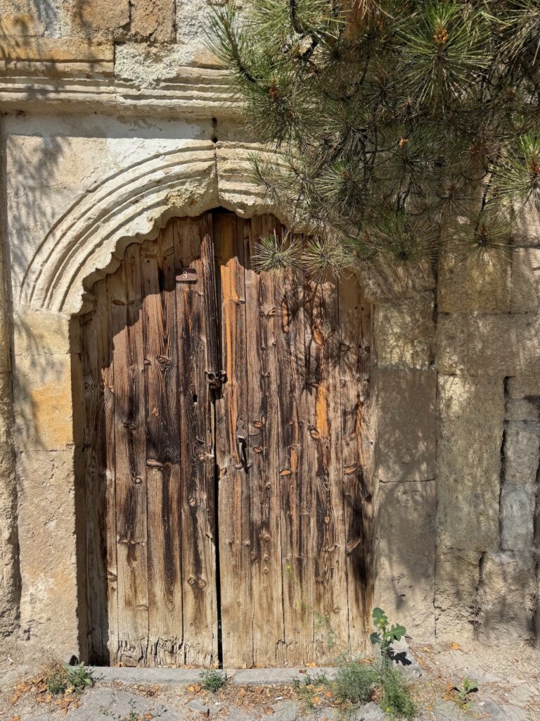 I could use a nap but we gather at 10:00 A.M. for a village walk of Mustafapasa. Our hotel is in a small hilly town with cobblestone streets and many of the houses are literally built into the hillside. Its spring and bougainvillea climb ancient walls and trellises. Jasmine and wild roses perfume the air. We pause to take photos of picturesque wooden doors with peeling paint and tilting fences. Dinner tonight and tomorrow will be on our own so Taylan is orienting us to our village and he points out a few local cafes and restaurants where we might want to dine.
