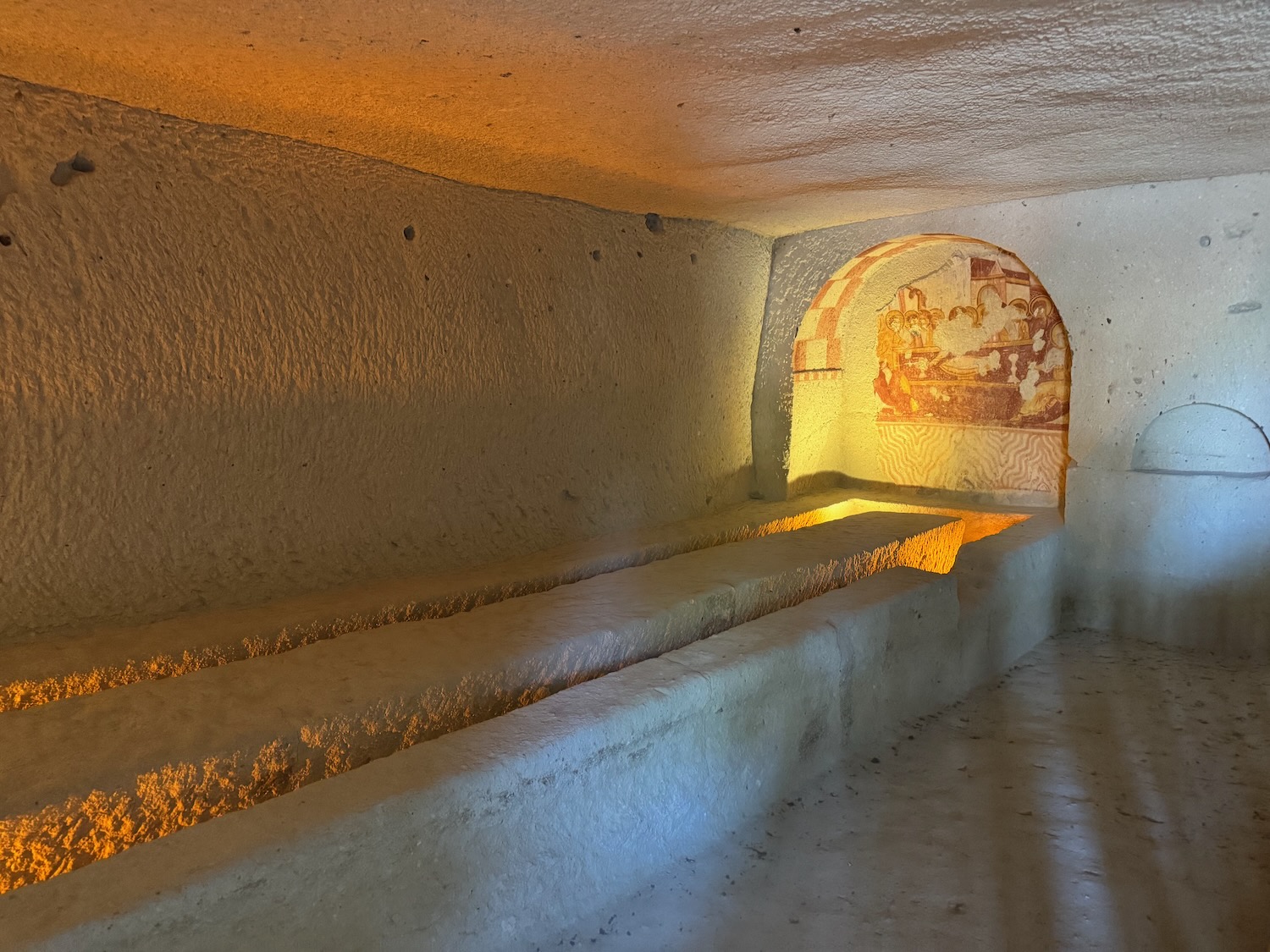 There is no rest for the curious on a Rick Steve’s tour. Don’t sign up for one if you want a laid back day! We bid goodby to our lunch time host and hostess and drive the short distance to the underground city of Kaymakli. Predating back to the second millennium BC when invading armies were common, locals built warrens of underground cave cities where a thousands could shelter for months at a time.