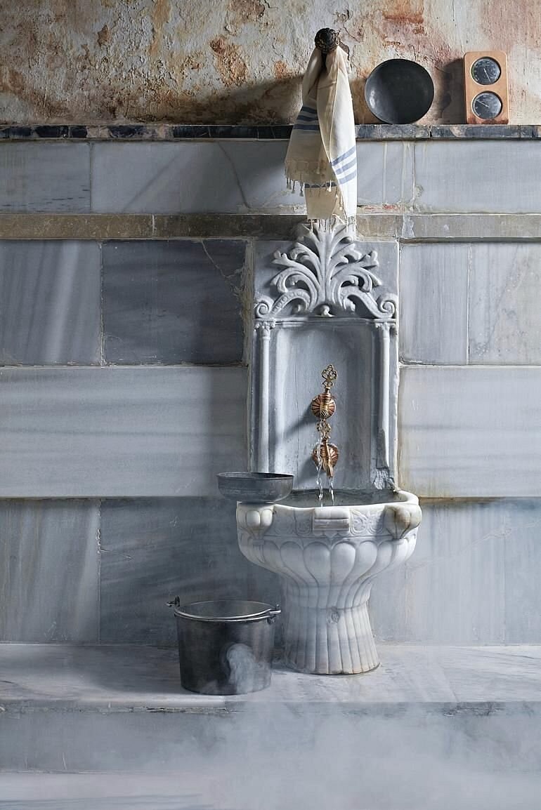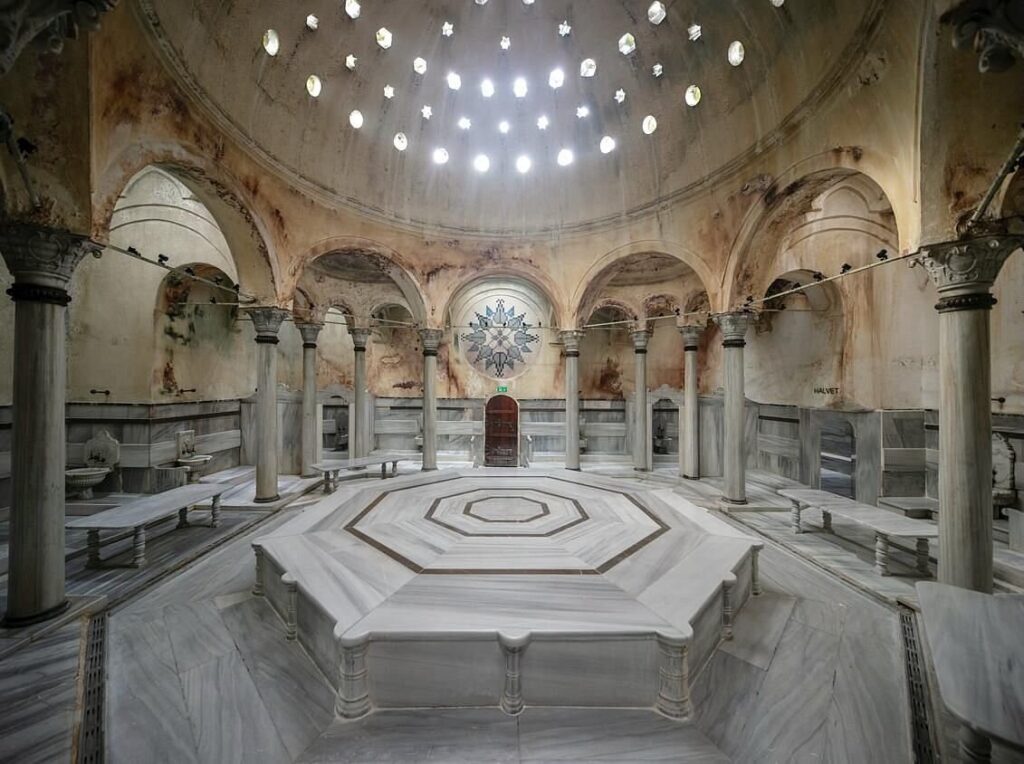 The Cagalogu Hamami is recommended in the Rick Steve’s guidebook and I reserved our 3:00 P.M. experience from the United States. Art and I find the address off a busy street and we step through the ancient doorway and walk down a few steps and enter into the softly lighted reception room. Several elegantly dressed men check the appointment book, nod and direct us to a small waiting area with a dozen foreigners waiting. I look up and see the huge marble dome above with light streaming in from geometrical piercings in the marble. The guests speak in soft whispers and I overhear that one group has booked the same spa treatment that Art and I have. Another single traveler has booked the basic treatment for 90 Euros. The men’s and woman’s baths are strictly segregated. I ask if both sections are under similar ancient marble domes and we are told that the woman’s bath section is more beautiful than the men’s. A suited man steps into our waiting area and offers those of us waiting various add on spa treatments. Do we want our hands waxed or massaged? Perhaps a facial mud mask or a full body mud bath? Everyone waiting declines the moderately high pressure sales pitch and the man nods and departs. Soon, Art and two other men are called for their appointments and are guided through a small door to the right. Shortly thereafter, my name is called and I am grouped with two other younger women and we are escorted through a different door and into the women’s section. A beautiful marble fountain gurgles that is surrounded by a half dozen small tables and chairs and women sit wrapped head to toe in white Turkish towels sipping tea and nibbling on nuts and dried fruits. Around the perimeter of the space are perhaps 16 private changing rooms. They are dark polished wood each with a number and a large brass lock and key. Three attendants magically appear and April takes my hand and leads me to my changing room. She unlocks the door, hands me the large brass key and through universal sign language instructs me to disrobe and to put on the plastic wrapped disposable bikini underwear and to wrap myself in the oversize white Turkish Towel. A few minutes later, I timidly emerge shuffling in the disposable bath slippers. April magically appears and firmly takes my hand and leads me into another circular dome room slippery with steam and water. She deposits me in a small marble steam room with heated marble benches. I am not accustomed to steam rooms and fear that I will only survive a few minutes. The two other women in my group sit across from me and talk quietly. A lithe young woman enters and sits in a meditative position cross legged on a corner bench. Her palms are together and her fingers point to the ceiling. Geometric ceiling piercings in the marbled ceiling allow light to stream in. 15 minutes pass quickly and April appears again and takes my hand and leads me into the largest of the ancient dome rooms. There are 3 women lying on the center marble slab each in various stages of their treatments and each attended by their personal masseuse. Eight alcoves surround around the perimeter each with a small scalloped shell shaped fountain. April seats me carefully and she ladles warm water over my head and washes my hair. She begins to exfoliate my skin with a loofa mitten which feels heavenly. 15 minutes later she unfurls my large towel and wraps me modestly to lead me the few steps to the center slab. She has me lie down face down and thus begins my 30 minute bubble massage. I’m not sure the mechanics of the bubbles but I can feel them popping all over my body as she firmly massages me head to toe. The soapy bubbles also give a foamy cover of modesty which allows me to relax completely. She instructs me to turn over, not an easy task on the slippery marble slab but once face up, I can enjoy the architectural magnificence of this historical bath. The thick marble dome must be 18 feet across with concentric piercings of squares and then stars and then octagons and then the piercings repeat themselves. I can literally see the soft beams of light streaming down. As April massages my neck and shoulders, I can turn my head to one side and then the other. I see women covered with bubbles on our center slab and on the other side, women are having their hair washed and their bodies exfoliated in their private alcoves. This is the most magical pampering treatment I have ever experienced and I don’t want it to end. I feel that I have stepped into the 19th century painting; The Bath by Jean-Leon Gerome or that I am a Sultan’s grandmother. Thirty minutes later, April leads me back to my sea shell fountain alcove and pours buckets of warm water over my head and body rinsing off the soapy bubble until I am cleaner than I have ever been. She quickly unfurls my wet towel, cocoons me in a dry towel and again grasps my hand to lead me carefully from this slippery bath room into the first room where earlier I saw women sitting around a fluted fountain sipping tea and eating nuts and dried fruit. She puts me into my changing room, leaving the door open so I can have a view of the fountain and the concentric circle of flickering pillar candles. She indicated that I should recline me on the chaise inside my changing room. Another woman instantly appears with a tulip glass of tea and my individual plate of a trio of dried fruit, nuts and Turkish delight. I sit upright and nibble on the treats watching the candles flicker around the fountain. Had I visited with a friend, the two of us would have been ushered to one of the fountain side tables but as an introvert, I am very content in my own private space. I finish my tea and most of the sweets undisturbed and when my glass is empty, April materializes again and pulls a stool up to the end of my chaise and indicates that I am to recline again. I am still wrapped only in my towel and she expertly massages my first one foot and then the other. She firmly massages my 