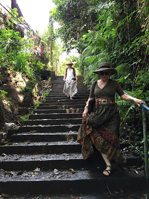 At 4:30 we walk to Tabra’s work compound, settle finances with her business accountant Made, and from there walk to Lala Lili’s for a disappointing dinner. Ten years ago, Art, John and I stayed in a secluded villa behind the gates of the Lala Lili restaurant. At that time, Lala Lili’s was a tiny cafe and rice paddies stretched as far as one could see in all directions. Today, the restaurant has expanded, most of the rice paddies are gone and in their place are wellness spas, mindful retreat centers, guest houses and restaurants. I know that as a traveler, I am part of the problem but the changes are awful. Balinese culture is based on a form of Hinduism and I find the ’New Age’ explosion in Ubud, distasteful.