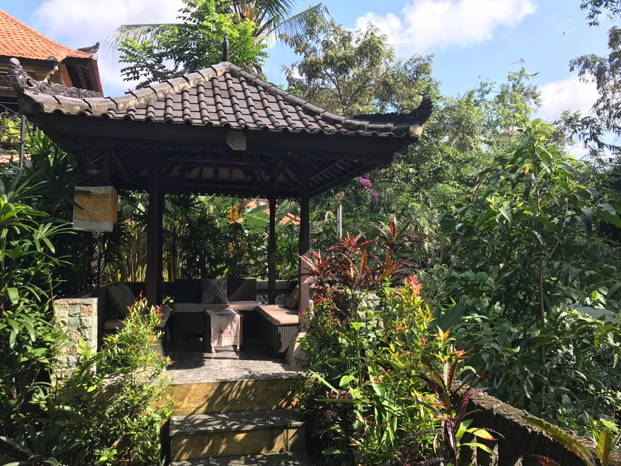 It is after 2:00 P.M. when we return to Penestanan and our guest house. We have two delicious hours to enjoy the ambience of our private courtyard garden. The day is hot and humid and Alisha takes a dip in the small, jewel of an infinity pool.