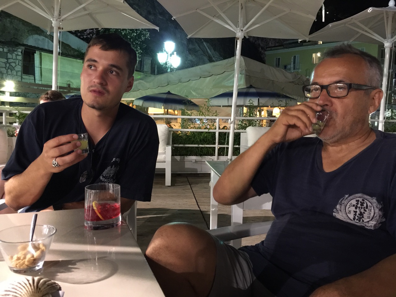 In Sorrento, the main street is closed to traffic at 8:00 p.m. each evening so that pedestrians may stroll, shop and drink. Art and John buy gelatos and we continue our stroll. Eventually we find an outdoor café where we can sit and order drinks. Art discusses the Brexit with the Irish couple sitting at the adjoining table. The walk back to our Air B&B seems especially long tonight.