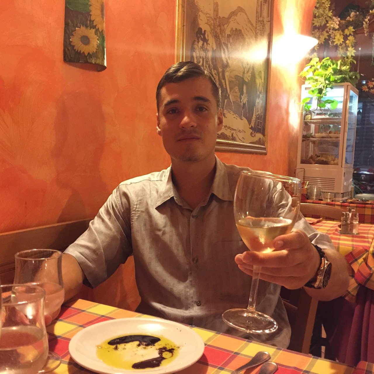 John toasts to our first day in Rome