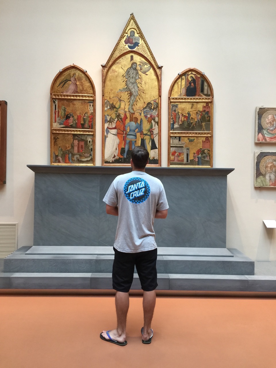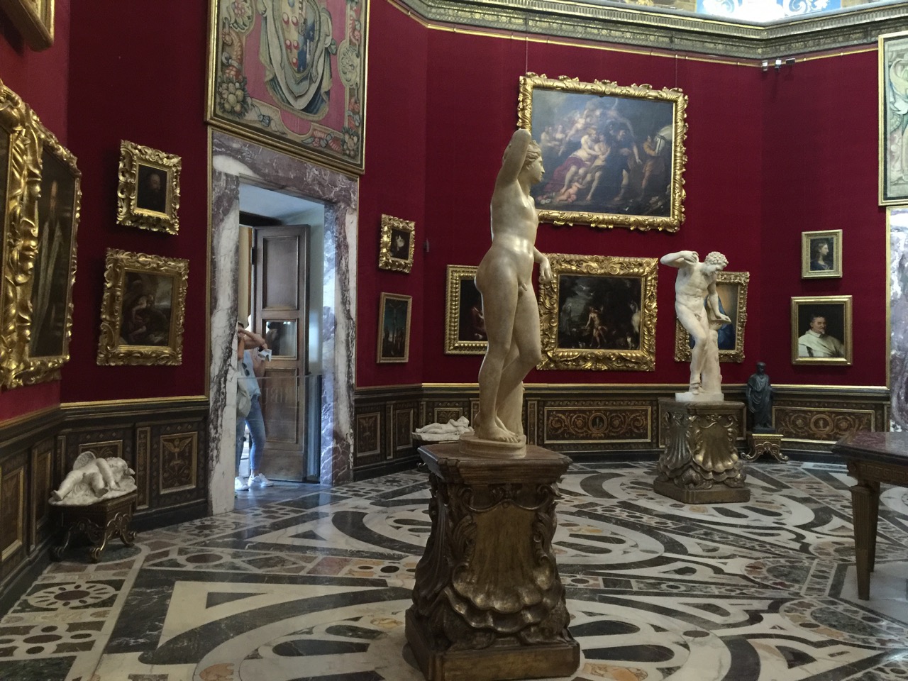 The Botticelli room is one of the highlights, but each gallery is a visual treat and seeing the familiar paintings is like visiting old friends. I see tears welling in Art’s eyes as he gazes at some of the masterpieces he has only seen in pictures and I feel great satisfaction watching our son’s appreciation as he drinks in the centuries of art and history. The octagonal Tribura Room is a tiny jewel of a gallery where we are only allowed to peek through the doorways into the opulent interior.